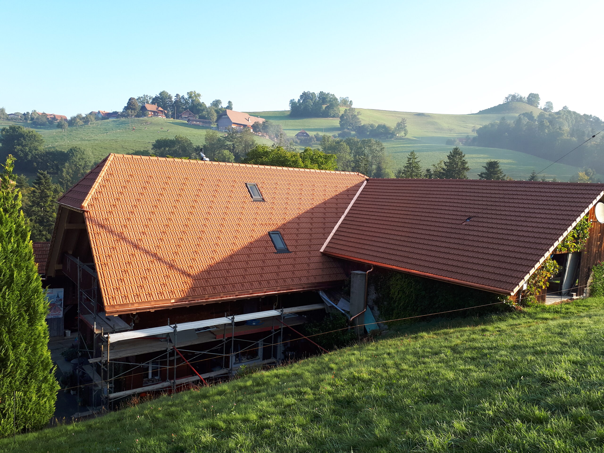 Wir sind Ihr zuverlässiger Partner in der Region Rüeggisberg, wenn es um wind- und wetterfeste Gebäudehüllen geht. Unser Fokus liegt auf massgeschneiderten Lösungen für Sanierungen, Renovationen sowie sämtliche Reparatur- und Wartungsarbeiten an Ihrem Dach und Ihrer Fassade.